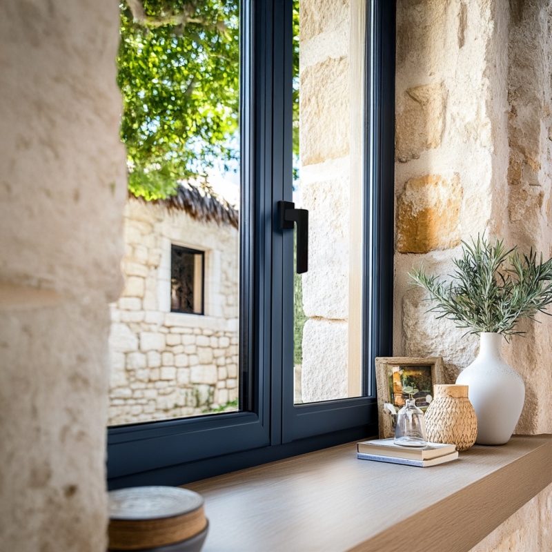 L’Aluminium, grâce à ses profilés fins, est le matériau de choix pour une esthétique moderne, sans compromettre l’efficacité énergétique. Les menuiseries Novobois intègrent systématiquement la Rupture de Pont Thermique (RPT)pour garantir un excellent coefficient Uw (souvent inférieur à 1,7 W/m².K). L’association de la RPT et du vitrage feuilleté 55.2 haute performance assure une isolation thermique performante, réduisant les déperditions de chaleur et contribuant aux économies d’énergie, particulièrement important dans le climat de Cugnaux.